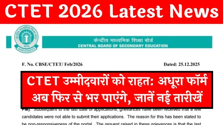 CTET Exam 2026 Date: अगर आप शिक्षक बनने का सपना देख रहे हैं, तो यह खबर आपके लिए बेहद महत्वपूर्ण है। केंद्रीय माध्यमिक शिक्षा बोर्ड (सीबीएसई) ने CTET Exam 2026 Date की आधिकारिक घोषणा कर दी है। सीटीईटी परीक्षा 2026 तिथि 8 फरवरी 2026 को निर्धारित की गई है। यह परीक्षा रविवार को आयोजित होगी, … Read more